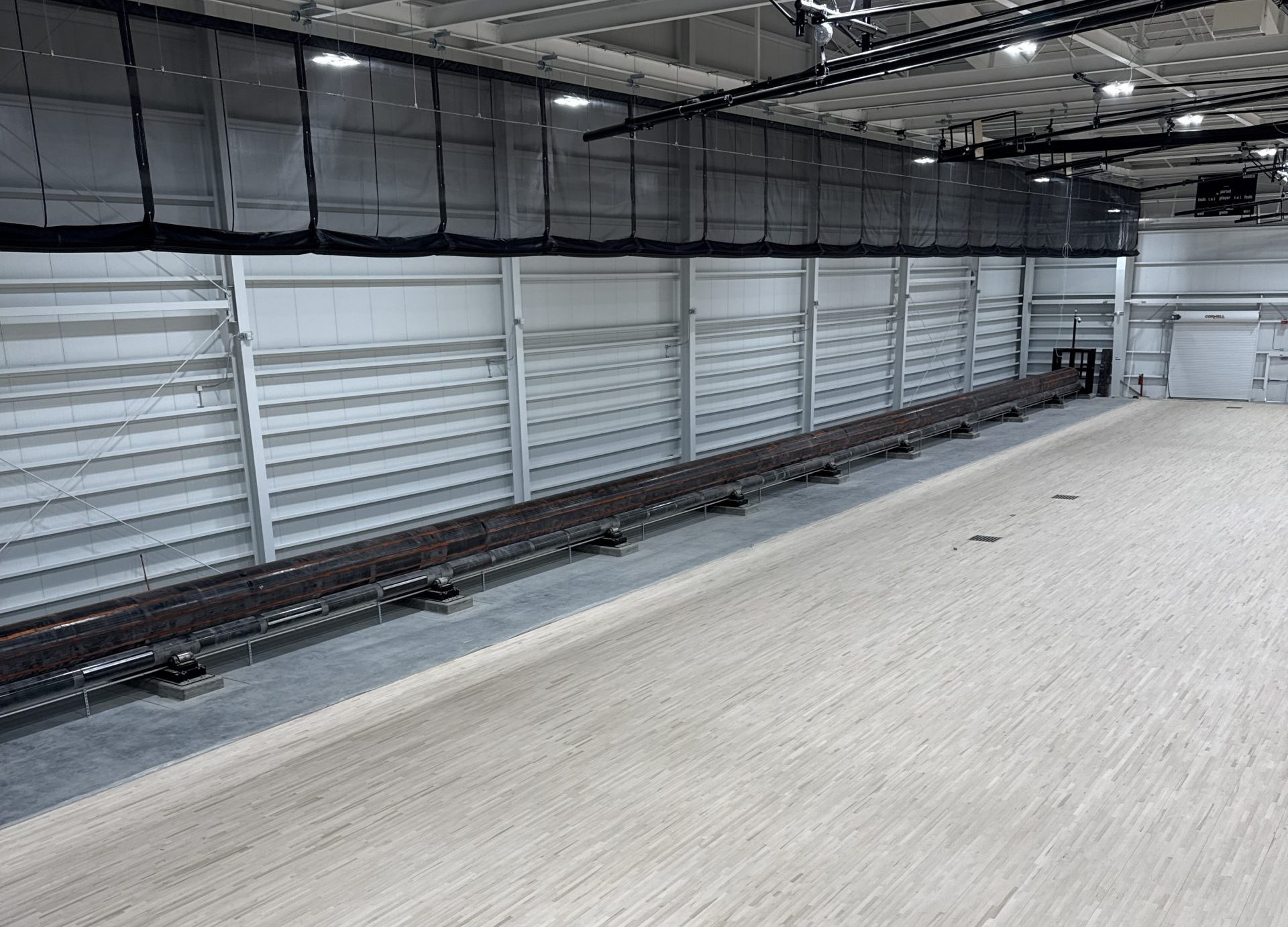 Following the turf padding delivery, installation began this week on the system, which is designed to transform the facility from a hardwood court to a full-size turf playing surface using large-scale mechanical components and precise engineering. The installation process will be just over a month, with the system expected to be fully installed by the end of February.