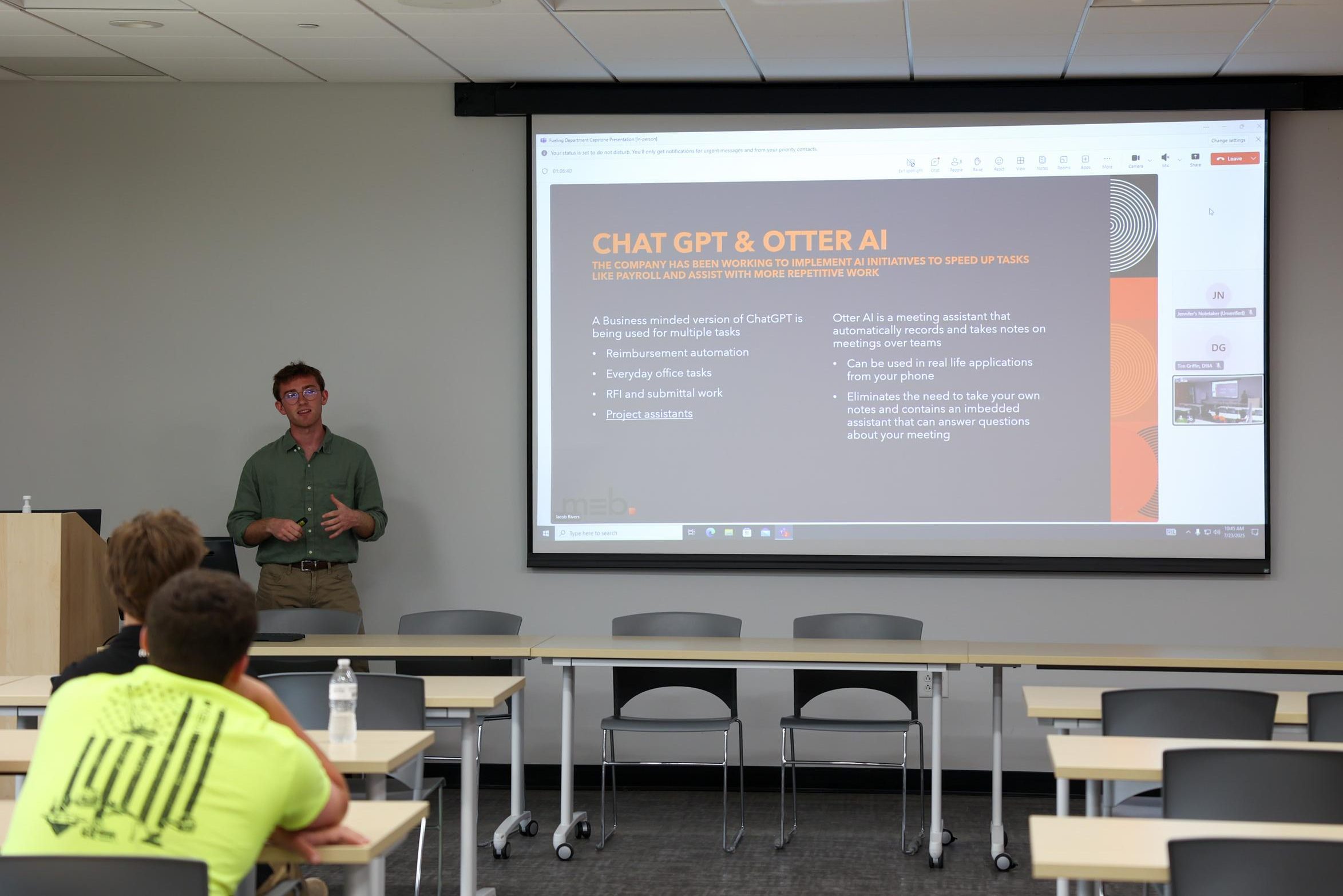 As part of his work with the committee, Jacob gave a presentation on how MEB could use GPTs, a customized version of ChatGPT, as a tool in day-to-day project work. He walked the group through creating a custom GPT project assistant that could support quick information lookups, submittal criteria, specification summaries, RFI assistance, and more.