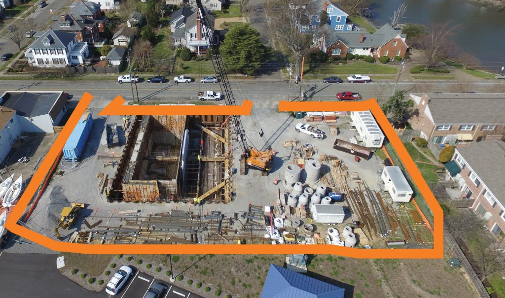 Bridge Street Pump Station was constructed on a tight site within a Hampton neighborhood. Due to space constraints, a cofferdam was required to provide adequate space for construction while permitting traffic in/out of the site. Deliveries were carefully coordinated and organized, as storage space on-site was not available. Many construction activities requiring more space to execute had to be completed at night or on the weekends to minimize impacts to the public, residents, and businesses. Tie-ins to existing utilities were located within roadways and easements, so operations required careful and close coordination usually resulting in night and weekend work. Local stakeholders were regularly engaged and informed of construction operations and possible disruptions.