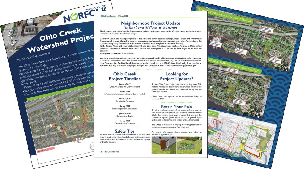• Communication with neighbors about on-going work activities through varying measures to connect with all age groups via flyers, e-mail, website, and door-to-door in-person notifications